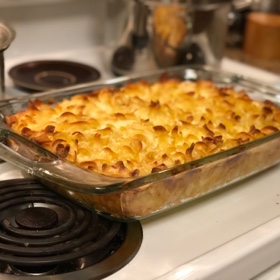 Preheat oven to 350. Cook noodles